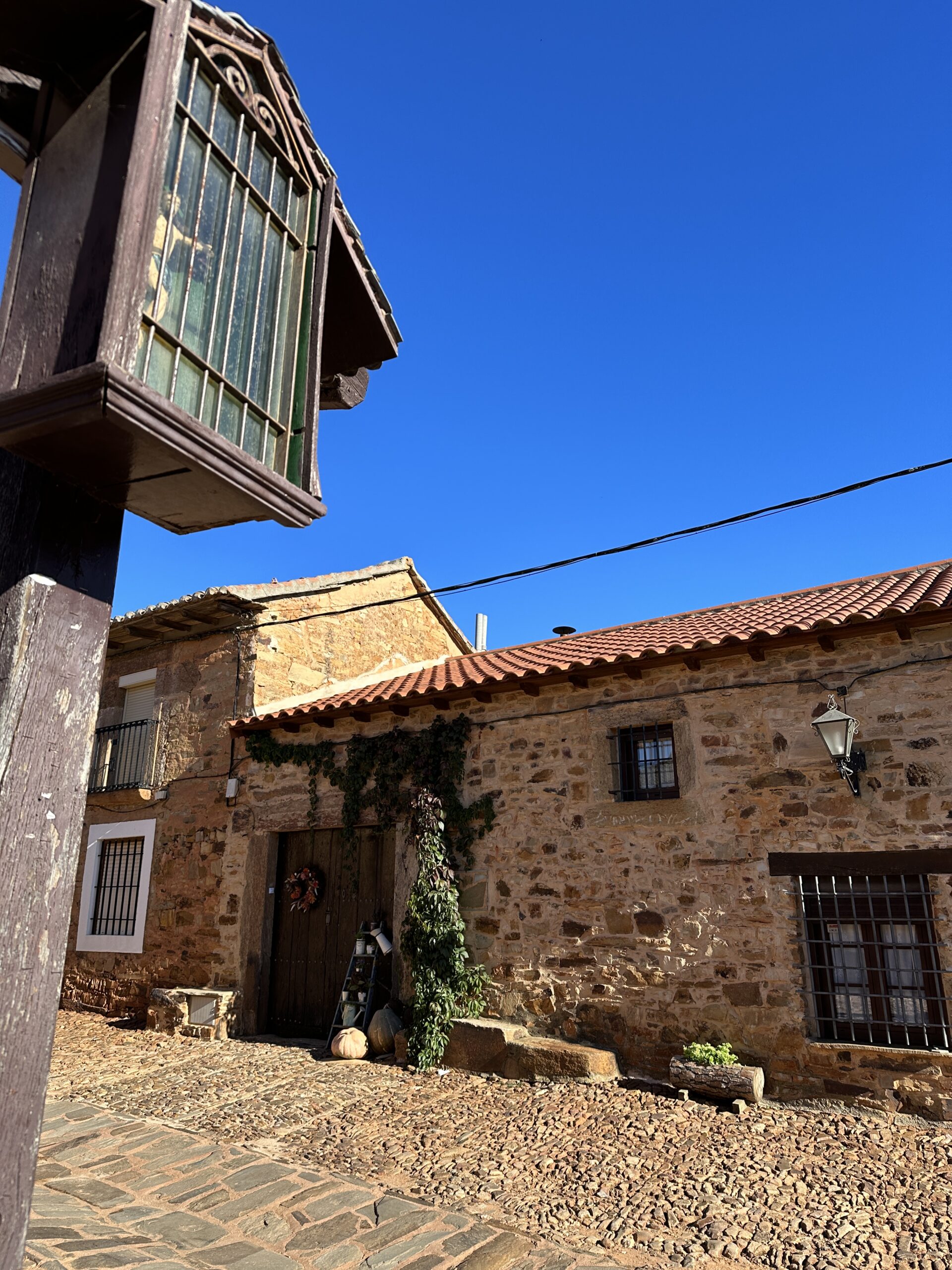 On the way we ride through a quaint village representative of the change in the region , Castrillo de los Polvazares, as evident by the barrel tile roofs, stonework walls and cobblestone paths through town.